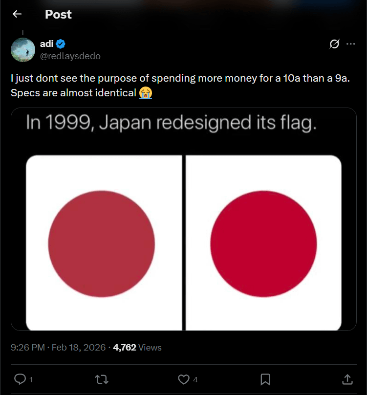 as Pixel 9A pic.twitter.com/9wmEXW7uah— Marques Brownlee (@MKBHD) February 18, 2026